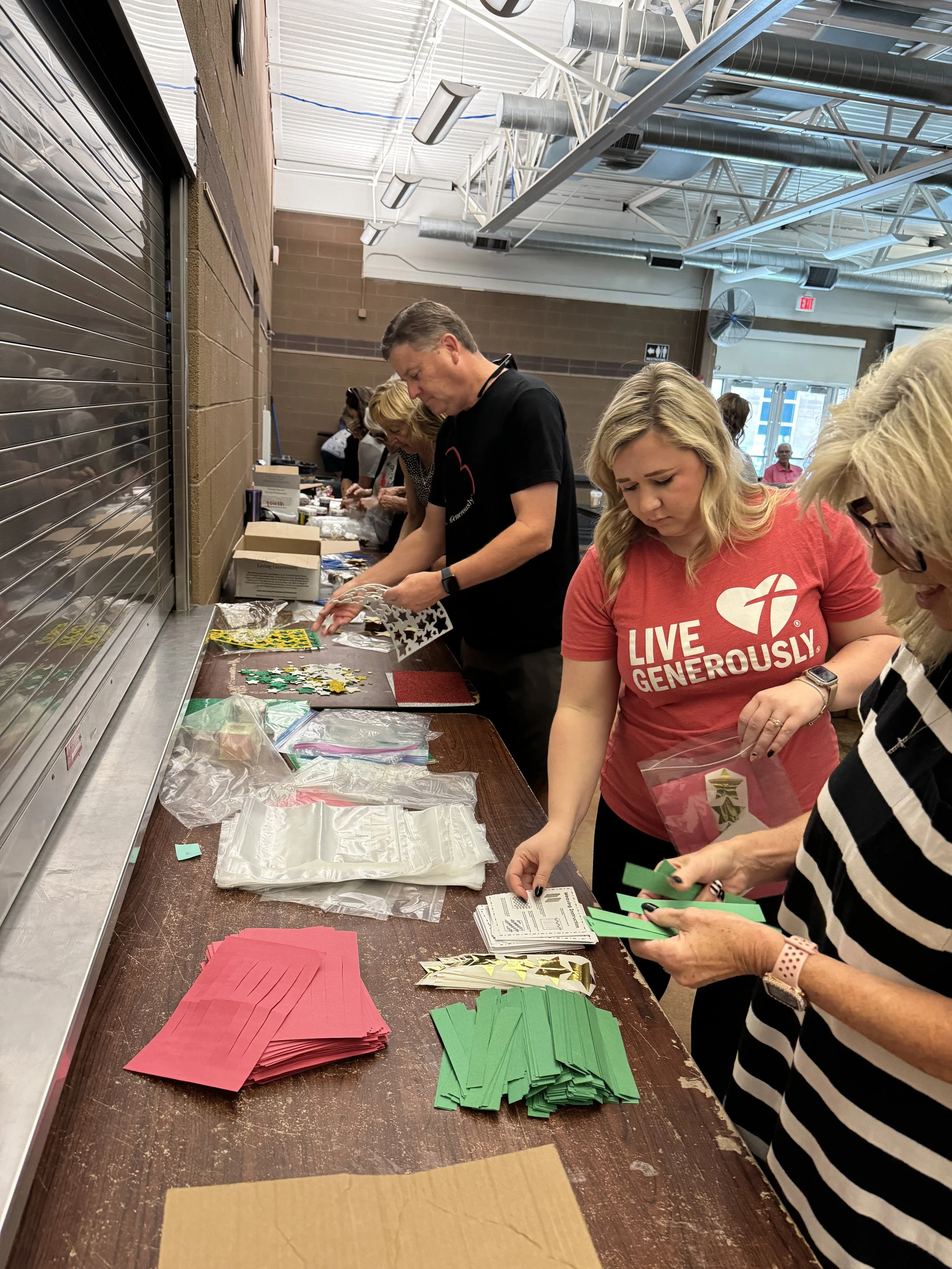 An “Easy Out” is a low-commitment service project done on our campus after the 10:00 service. This group serves the community with small service activities quarterly at church. They serve 100-110 people at each event.